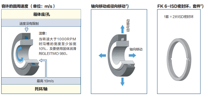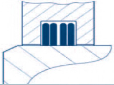 用于滾動及滑動軸承的潤滑油密封,特別在密封要求很高的時候,如果抹上油脂,能夠用于防潤滑油泄漏及阻止灰塵、 雜質(zhì)、濺水的侵入?!癋K 6”疊片密封環(huán)能夠提供均勻的徑向張力。相對于“FK 3”它在圓周上沒有間隙。組合式疊片密封環(huán)FK 6-ISKD由于增加了溝槽底部的密封,迷宮回路的增加,其密封效果也更好。